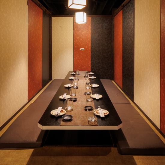 【大人数プライベート個室】10~30名様でもゆったりとお座りいただけるテーブル個室。大切なお客様を迎えての接待やビジネス仲間との会食、お仕事仲間との飲み会はもちろん、ご家族・親族でのお食事などにもご利用ください。ご宴会は飲み放題付が断然おトク。ゆったり大切な時間を価値あるものを♪